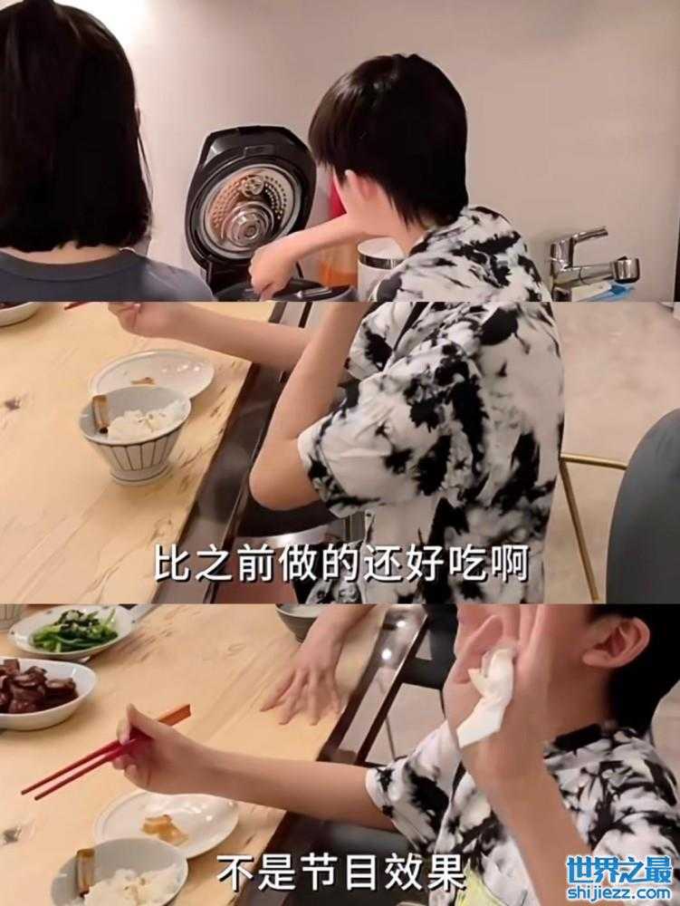 顶顶在帮妈妈盛米饭后忍不住尝了一块排骨,直夸妈妈比之前做得都好吃,还对着镜头摆手称“不是节目效果”,简直综艺感满满。