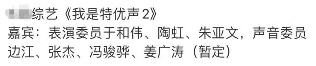 另外,陶虹还被曝出有一档综艺《我是特优声2》要录制,将搭档于和伟、朱亚文、边江、张杰等,目前该综艺呼声很高,想必受此影响,陶虹的这个综艺也将无法正常录制。