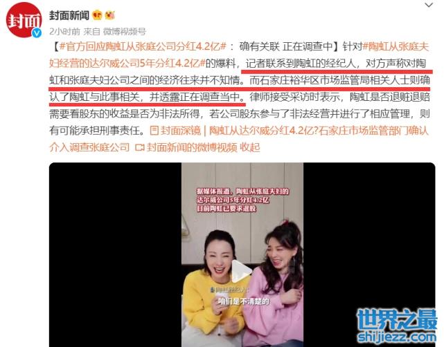 近日,张庭夫妇涉嫌传销名下96套价值17亿的房产被查封一事被外界热议纷纷,而与张庭夫妇深度捆绑的演员陶虹、徐峥夫妇也难逃干系,在4月21日官方回应中,已确定陶虹五年期间从张庭夫妇公司分红4.2亿,而后3年分红所得的2.6亿则是张庭夫妇公司处于传销阶段的分红,目前陶虹已确定介入张庭夫妇公司已被正式调查,如此看来也有可能面临着相应的刑事责任。