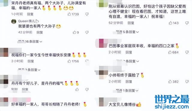这样的视频下,也引来了网友们纷纷评论,说宋丹丹老师真有福,两个大孙子,儿孙满堂,幸福的一家人。还有人评论了解巴图之后,害怕这个他缺少父爱心理不健全,但现在再看巴图,才知道世上唯有自渡,现在有了这么幸福的家庭,祝福他。
