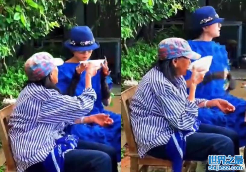 虽然美食当前,但杨丽萍并没有选择一个人先吃,而是不停地用云南话呼唤着妈妈一起来吃。等了许久,杨丽萍便去将妈妈牵到了餐桌前,母女二人双手紧紧相牵,画面十分有爱。或许是妈妈行动不便,杨丽萍还将妈妈扶着坐到了凳子上。