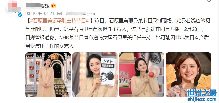 早在三月份时,石原里美就曾挺着孕肚现身节目录制现场,即将临盆的她,当时是作为节目主持人的身份出席,且该节目定在四月份开播,所以当时就已经有人声称石原里美或将成为日本产后最快复出工作的女艺人。