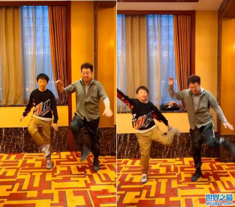跳完一轮之后,爷孙俩都感到很疲惫,走路都十分的踉跄。看到王为念走路都不太利落了,腿走起路来都是绷着的,像个机器人一样,看来这运动是到位了。但是也要注意休息,不要用力过猛。