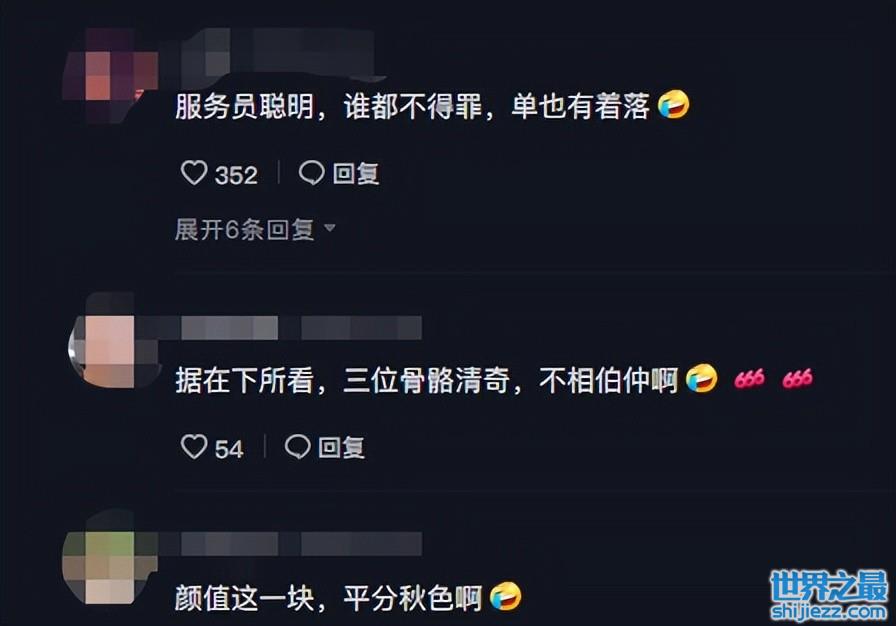 网友看见师徒三人的视频,纷纷在评论区留言发表自己的看法。有的网友说是服务员聪明,aa的话谁都不得罪,单也有人买。这句话说得不错,确实是这样。还有的说三个人确实骨骼清奇,长相不分上下。