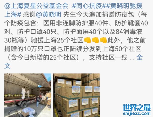 后续得知抗疫物资依然很紧张,黄晓明又追加捐赠了防疫包,驰援上海25个社区。随后他捐赠的15吨生活物资,送到了2547户上海居民、村民手中,解决了他们的温饱问题。