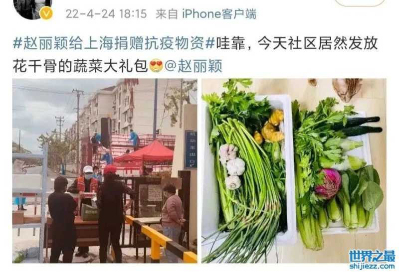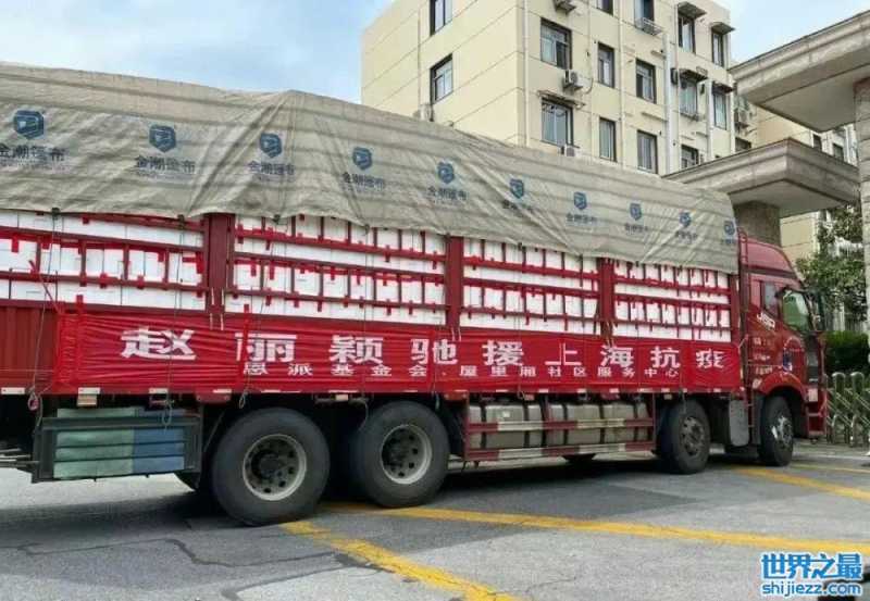 赵丽颖向上海市民捐赠了新鲜蔬菜,物资装了一大卡车,看起来分量就不少。