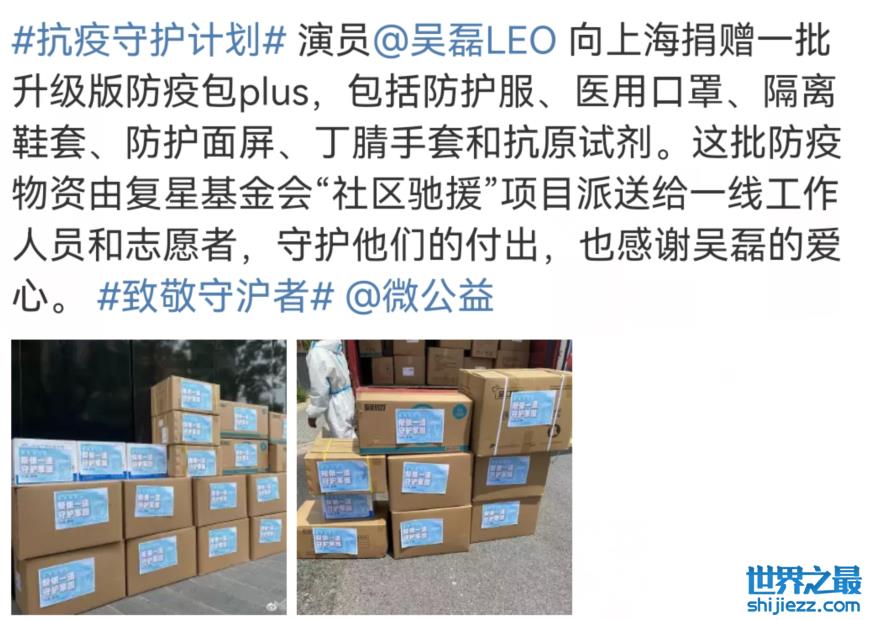 吴磊虽然不是上海籍艺人,但在高中之前,他都是跟着家人定居上海的,他要好的同学朋友,都是上海人。,这次他也向上海捐赠了一批防疫物资,希望能尽到自己的一份力。