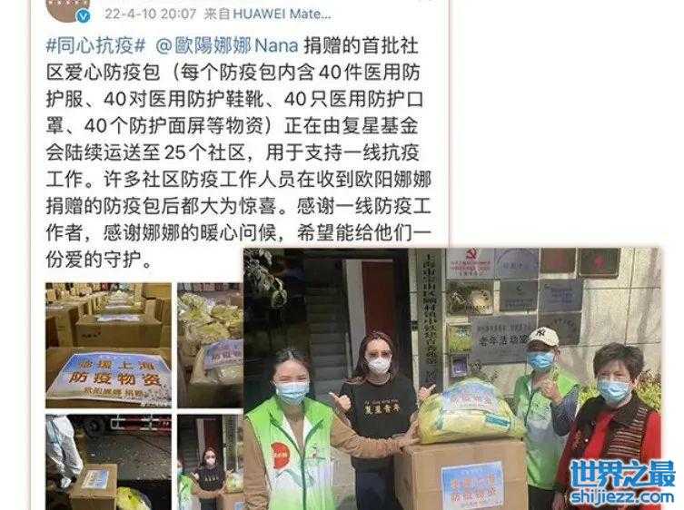 欧阳娜娜虽然年纪小却很有担当,4月10日,她就捐赠了首批爱心防疫包,送至25个社区用于支持一线防疫工作。