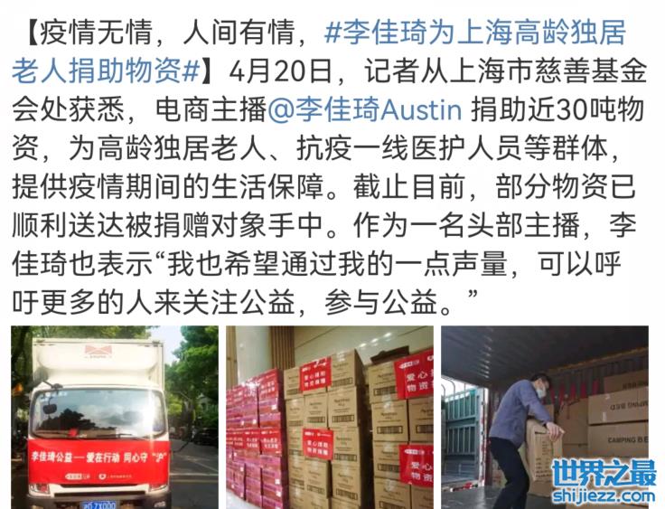 李佳琦也算是直播界的“顶流”了,一哥这次照样给力,虽然他自己也在被隔离当中,但他还是通过慈善基金会捐了款,认购了近28吨的“高龄独居老人防疫生活关爱包”,相当给力了。