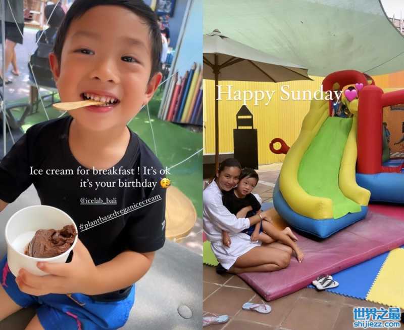 除了吃蛋糕庆祝,乐基儿还带着儿子外出游玩庆祝这一天。她发出了小朋友的近照,脸上肉嘟嘟的十分可爱。她还发了一张儿子吃冰淇淋的照片,并配文说“用冰淇淋当早餐,好吧,今天是你的生日”乐基儿对儿子的宠溺可见一斑。
