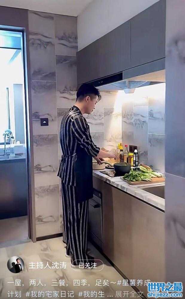 近日主持人沈涛在社交平台更新一条自己在家中做饭的视频,并配文“一屋,两人,三餐,四季,足矣”。