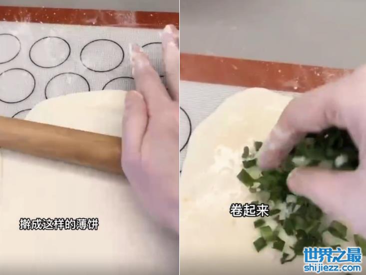 当天王琳一个人揉面做油酥煎饼,动作看起来相当接地气,满手的面粉她也毫不嫌脏,全程一边拍一边做,俨然就是一个专业的居家美食博主。