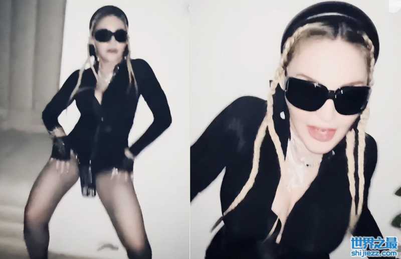 近日,歌星麦当娜在社交平台上晒出一则居家热舞的视频。当天,麦当娜身穿黑色连体紧身衣,搭配黑丝显得格外魅惑,一头金发扎成辫子个性十足,戴墨镜双手叉腰动作霸气。因为是在家中自嗨的原因,麦当娜跳得超起劲,时不时扭动身躯表现欲强烈,抬腿扭胯动作稍显不羁。