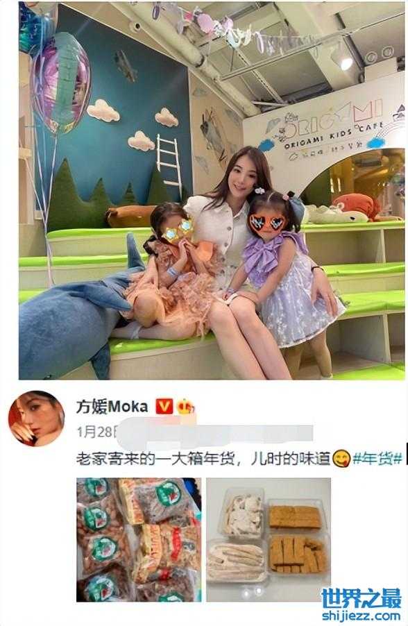 除了这组照片外,方媛经常会在社交平台上分享自己的日常。例如分享有爱的亲子时光,两个女儿穿着可爱的公主裙靠在她身边,都像妈妈方媛一样漂亮可爱。方媛还会分享从老家寄来的年货,各式各样的坚果与点心让方媛想起了小时候的味道,十分接地气。