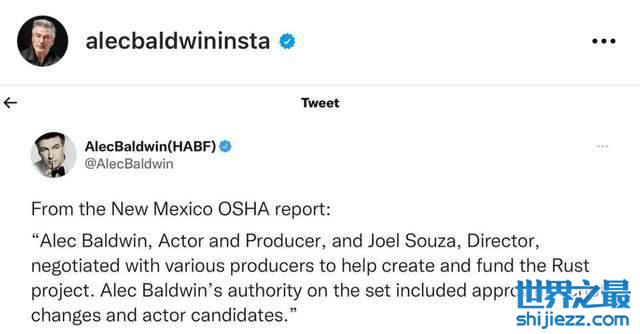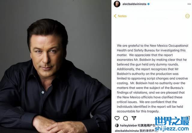 亚历克鲍德温的律师声明中提到,当时亚历克鲍德温确实认为枪支里面所装的子弹为道具假子弹,并且作为一名制片只拥有更改基本内容和选角的权利,所以像道具管理这样的事宜其实并没有管理权,因此认定对亚历克鲍德温免责。不过声明中还是提到,这场悲剧需要有人对此负责。
