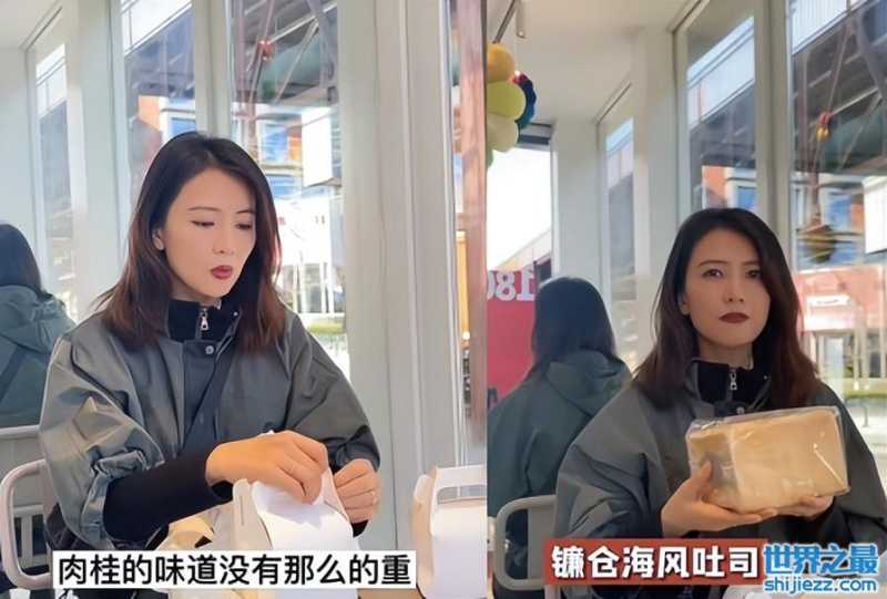 画面中的高圆圆满载而归,坐在店内摘下口罩后做起了“开箱测试”,高圆圆仔细分享着买的几种面包味道及样式的不同,还表明自己最喜欢吃的香肠面包没有买到,非常失落。在介绍面包时高圆圆语气十分温柔,像极了一个邻家大姐姐。