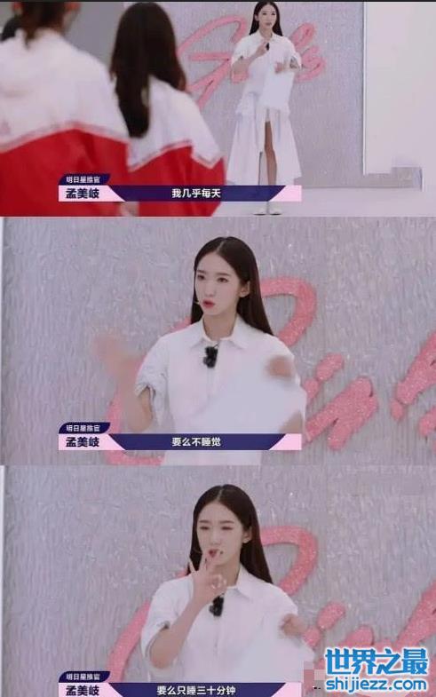 和吴宣仪同一个公司出来的孟美岐那也是满嘴谎话,参加节目时是导师的身份,为了凸显自己有多努力工作才有这样的成就,于是在指导学员的时候,孟美岐谈起了自己参加《创造101》时的辛酸经历,称自己连续两个月都专注于训练,期间要么不睡觉,要么只睡半个小时。