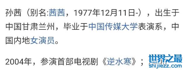 靠槿汐姑姑一角爆火的孙茜,在《甄嬛传》播出时,很多观众都认为她的年纪应该不小了,可看到她是86年的就感到疑惑,是剧组妆发太坑人,把人画老了吗?随后孙茜就被发现是改了年龄,在早期的一些的资料中,孙茜的出生日期写的是1977年12月,跟86年足足差了9岁,从70后秒变85花。
