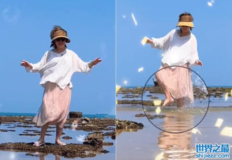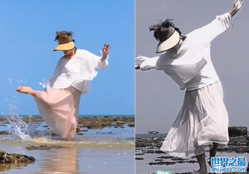 马丽穿拖鞋海边跳操太搞笑!光脚站水中不怕脏,没站稳差点摔水里 ...
