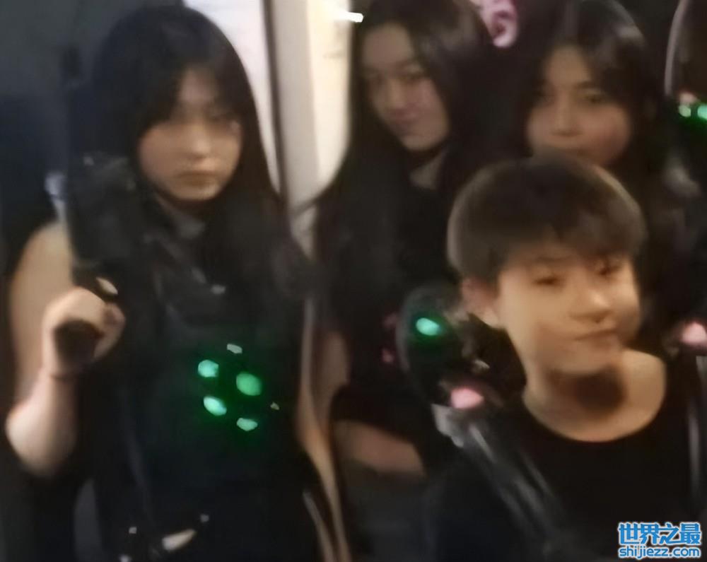另外一张合影照片之中,是李嫣和瑞士学校的同学们一起玩枪击游戏的场景。李嫣站在后面的人群之中,和闺蜜站在一起拿着松,侧着脸的她个性十足。