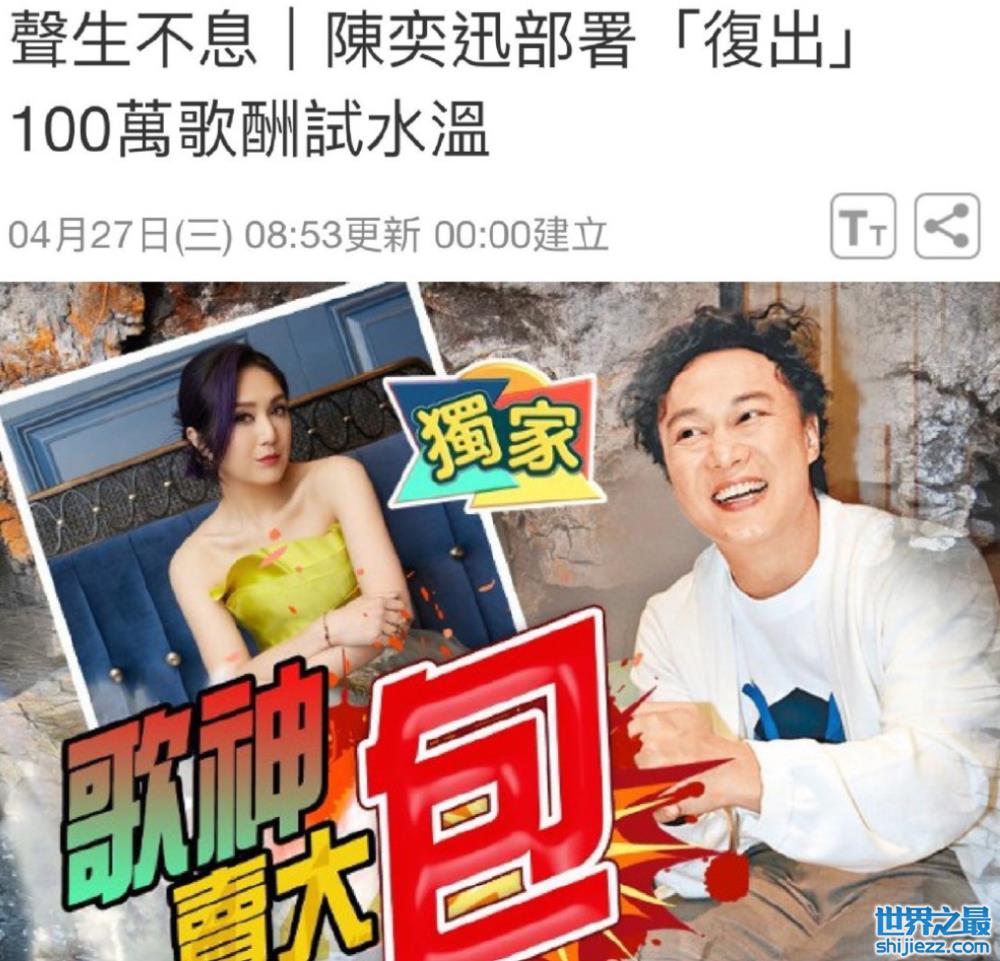 最近,陈奕迅被曝要加盟《声生不息》,参加最后一期节目的录制,可是这个消息很快又被经纪人否认,原因是价格没谈拢。
