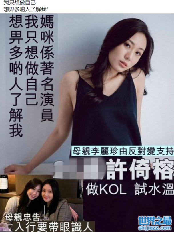 早前据台媒报道,原本毕业于名牌大学的许倚榕一直专注着服装设计领域,最近却突然宣布将朝着网红进军发展,而许倚榕本人也透露此举是因为想让更多的人了解自己,想撕掉外界对其“李丽珍女儿”的这个刻板印象。对于自己的事业转型新动态,许倚榕表示母亲李丽珍也由一开始的反对,到如今的支持态度,同时还给出了入行要带眼睛识人的忠告。