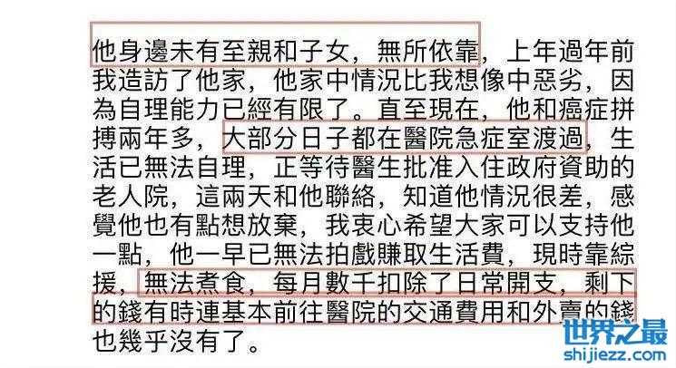 据悉,68岁的夏玉麟拍戏40年,但一直未婚未育,晚年身边没有亲人陪伴照顾,但他自己却患了末期肺癌。