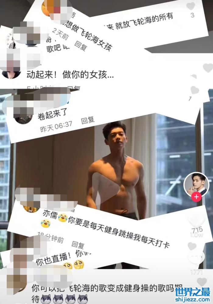 辰亦儒在某社交平台呼吁各位飞轮海女孩速速加入他的直播间一起动起来,顺便还附赠了一张极具诱惑力的健身成果照。