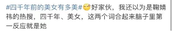 近日,有一部正儿八经的纪录片里面探讨了“四千年前的美女有多美”,结果点进去一看,网友们纷纷表示:四千年、美女两个词语,马上先入为主就认为是鞠婧祎的热搜。不得不说,这波标签营销还是很成功的,也难怪鞠婧祎及其团队会沉迷买热搜不可自拔。