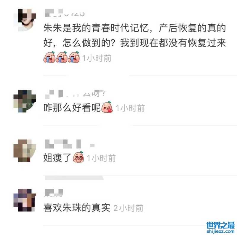 网友在评论中说朱珠产后身材恢复好,不仅瘦了还更美了,问她是怎么做到的。也有网友说喜欢朱珠的真实感。