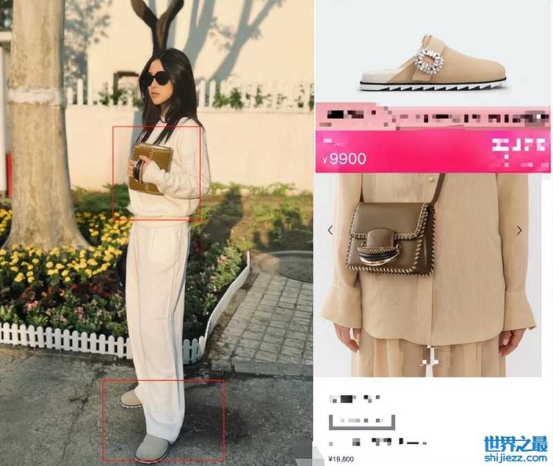 相比朱珠的穿搭更值得关注的是,朱珠脚上穿的鞋子与拿在手里的包包。据了解,鞋子是某奢侈品牌,价格近一万元,包包也是某知名品牌,价格近两万元。朱珠还拿着包包抵在下巴处微笑自拍,看得出十分开心。