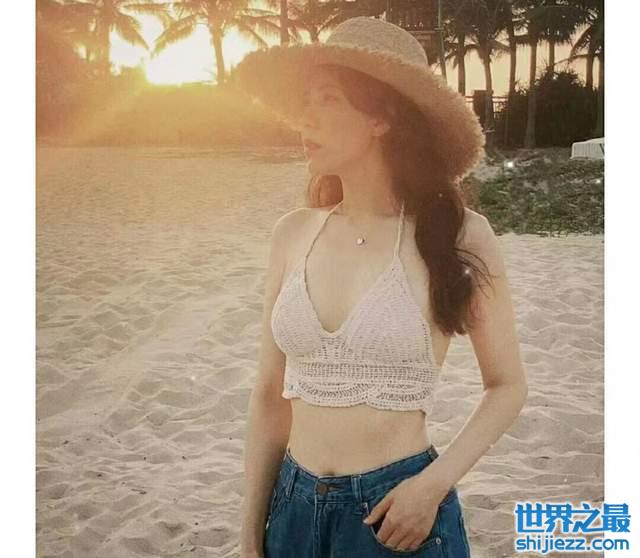 在沙滩上吹着海风,晒着太阳的曾黎,皮肤看起来分外白净毫无瑕疵,后背绑一根细带的泳衣使其精致的锁骨和直角肩展露无遗,阳光沙滩与美人,看起来就像是一幅油画。