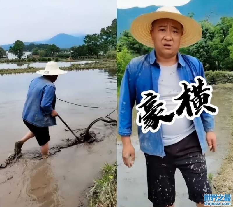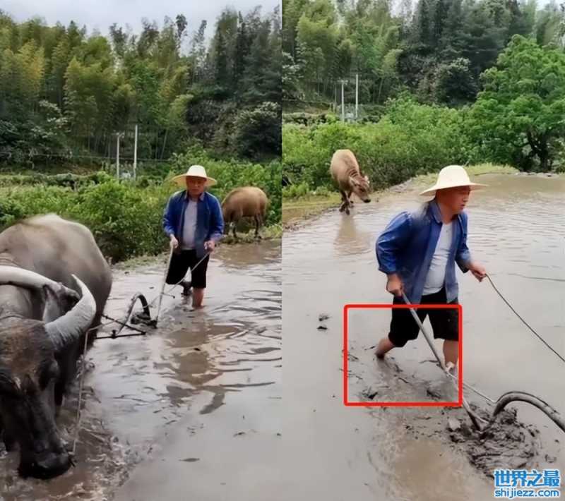 “赵四”刘小光田里牵牛犁地!一身泥水不怕脏,水田里太滑险滑倒 ...