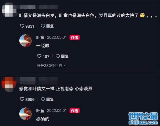 看见满头白发的叶童,网友们也在评论区感慨。曾经的偶像一个个都在老去,大家都是满头白发,感慨时间过得太快了。叶童也是亲自回复说时间就是一眨眼。还有的网友佩服叶童的洒脱,不惧衰老,正视自己的变化。叶童更是肯定的回答说这是必须的,这样豁达的人真的很帅气。