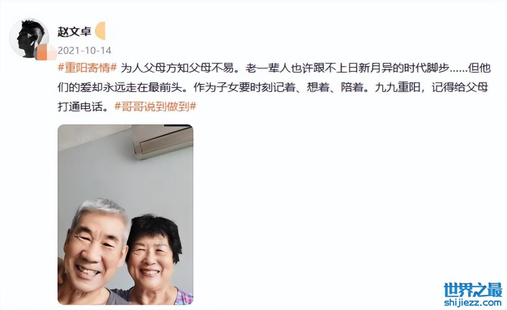 父母就是孩子们最好的榜样,能够把孩子教育的这么好,赵文卓夫妇肯定自己也做的很好。此前,赵文卓就在社交平台晒出自己向父母表白的内容,还提醒大家有时间就多给父母打电话,时刻想着陪伴父母老人。