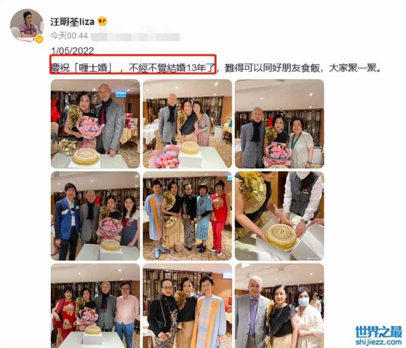 近日,汪明荃在社交平台晒出一组照片,发文庆祝自己和老公罗家英结婚13年,已经是“蕾丝婚”,称自己难得可以和朋友一起聚聚吃饭,感觉很开心。