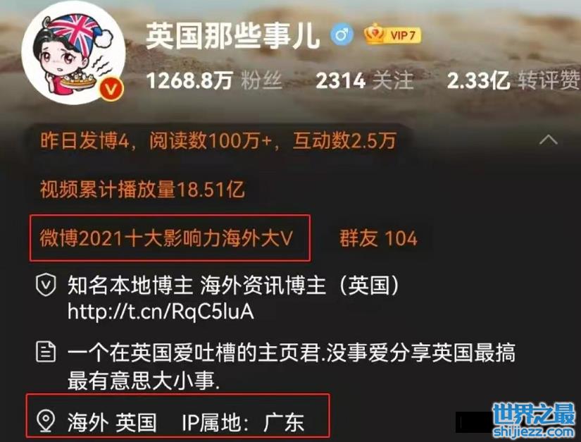 拥有千万粉丝量的网红大V“英国那些事”,有些小明星都没他粉丝多。他一直在分享英国资讯,自己的设置的定位也是在英国。可惜IP地址一曝光,他的真实属地却显示是在广东。