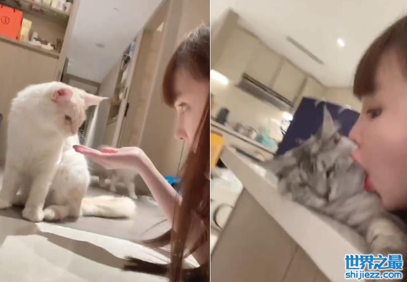球球在家中养了许多猫咪,光出镜的大概就有5只,看来她是真的很喜欢猫咪。在逗猫时,球球甚至还趴到了地上,为了搞怪真是一点也不在意自己的形象。在家中到处逗猫,倒也将球球家中的装饰展现了出来。她的住宅面积很大,并且装修得很精致,真是让人有些羡慕。
