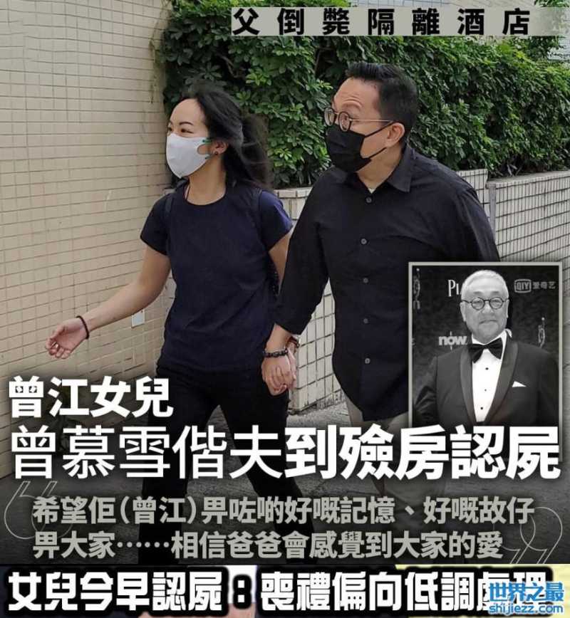 5月3日曾江去世已经一周了,曾江的家属非常低调,除了女儿、女婿前往办理遗体认领手续外,曾江的家人就没有再公开露面,关于葬礼追思会何时举行有哪些人参加并没有透露,此前曾江女儿曾慕雪表示希望外界给予曾江现任太太焦姣及家人们一些时间与空间,后事一切从简,想必也是想安安静静送别曾江。
