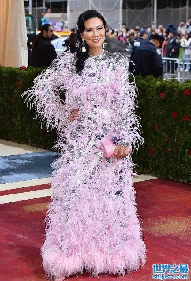要说在咱们熟悉的面孔里谁的服装最吸睛,那一定是今年已经53岁的邓文迪了。一身粉色羽毛亮片裙,在视觉上就吸引了不少人的注意力。