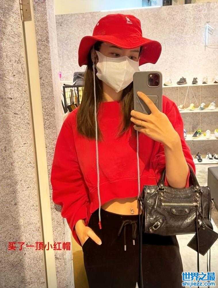 在51节这样的特殊日子里,张馨月外出是穿着一件红色的外套,然后配合着一顶红色的帽子。在店内玩自拍的张馨月发文:日常搭配!