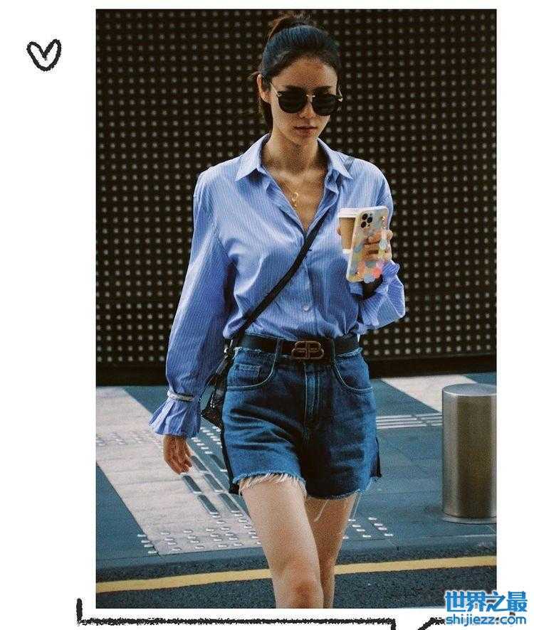 张馨月超级的自信,看得出美女对于自己搭配的风格还是很欣赏的。