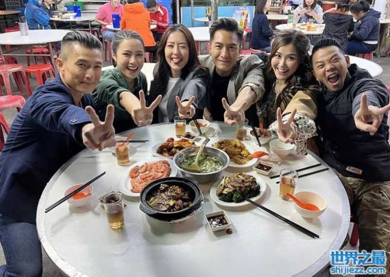 另外还有剧组之中与唐诗咏等人一起吃饭的合影照片,剧组之中的他们超级开心,也同样是超级享受这一种大家庭的氛围。
