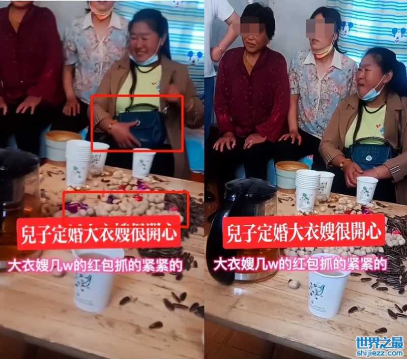 之后大衣哥老婆大衣嫂坐在椅子上,和周围的人聊的很开心,视频拍摄者说,大衣嫂还把手里几万的红包抱的紧紧的。在她面前的桌子上摆满了瓜子花生,还有各色的糖果,还很贴心的倒了很多杯的水。这架势就像是过年一样的热闹。看见大衣嫂脸上的笑容,想必对这个婚事很满意。
