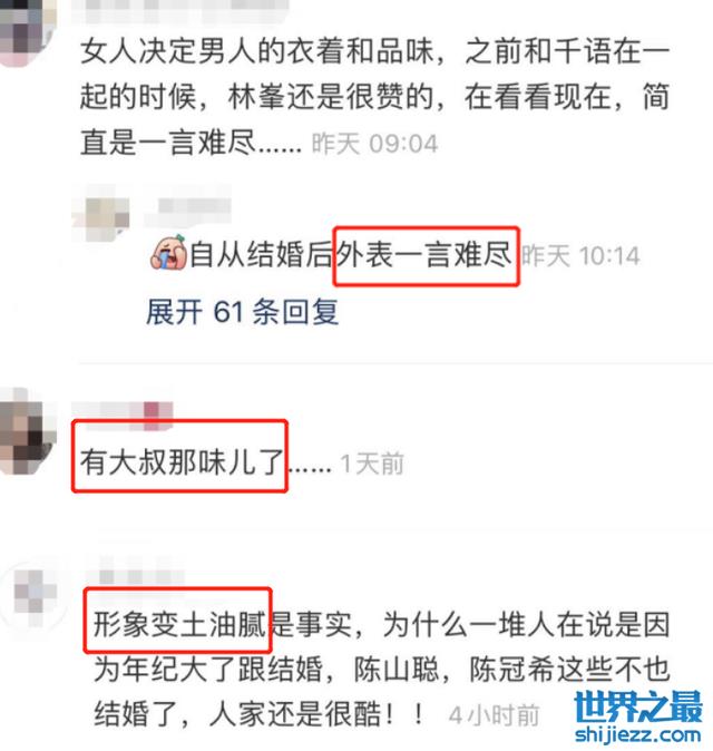不过网友们还是把注意力放在了林峯的穿衣打扮上面。评论区的大部分网友都表示现在的林峯品味下降,穿衣品味大不如前,颜值也下滑严重,与之前的“男神”形象相去甚远,甚至直言他变土变油腻。
