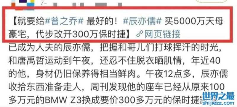 据网友爆料,辰亦儒跟曾之乔领证结婚之前,不但换了300万的新车,还买了5000万的豪宅做新房,直言要给老婆最好的。
