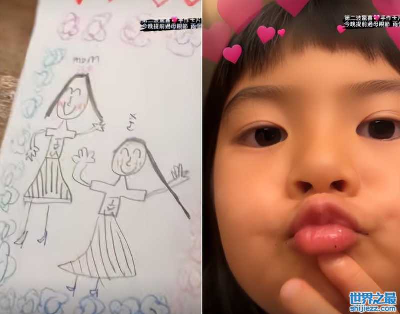 而且贾静雯的女儿们除了送上亲手做的手工花之外,还画了节日贺卡送给贾静雯。从贾静雯晒出的视频中可以看到,虽然小朋友的画很稚嫩,但也能感受到对妈妈的感情。而且女儿们还对着镜头嘟嘴亲亲,来表达对妈妈的喜爱。
