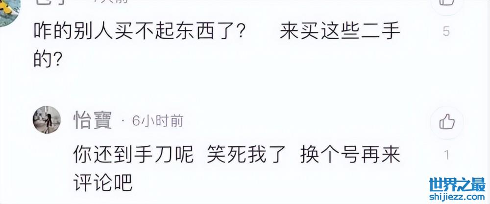 但也有一些人表示别人买不起东西了?来买这一些二手的? 你还到手刀呢,笑死我了,换个号再来评论吧。