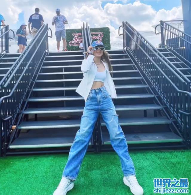 在另一张照片中,谷爱凌更是戴上墨镜狂炫自己的大长腿。简单的白色背心搭配破洞牛仔裤,上短下长的搭配充分展现了谷爱凌近乎完美的身材比例,再加上阳光下灿烂的笑容,元气运动少女气息扑面而来。