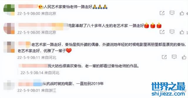 秦怡见证了中国影视的发展,并且身处其中创造出了许多经典的优秀角色,但曾有人评价秦怡时说到“她一生创作了很多优秀的角色,其中最成功的,是她严谨地塑造了自己的形象——一位德艺双馨的艺术家”。这样一位老艺术家离我们而去实在是深感不幸,祝福秦怡一路好走。